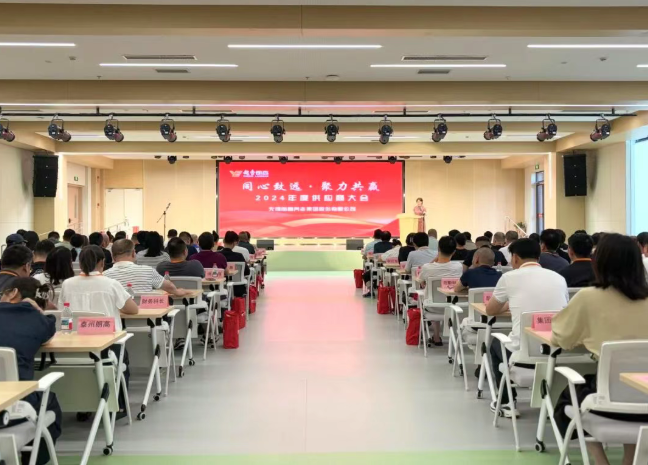 7月17日,无锡Kaiyun官方网站登录入口集团股份有限公司2024年度供应商大会在泰州Kaiyun官方网站登录入口院隆重举行。大会以“同心致远·聚力共赢”为主题,通过表彰优秀合作伙伴、分享合作经验,实现了越秀Kaiyun与供应商品牌价值的共同提升,开创了互利共赢新局面。出席本次大会的有集团副总经理陈娟娟,集团财务总监王斌,集团党支部书记、董事涂永峰,集团后勤保障总监、安委办主任孔志峰,集团采购部部长赵海洋、集团及机构采购、财务、后勤等各部门负责人与近百家供应商代表齐聚一堂,共绘发展蓝图。